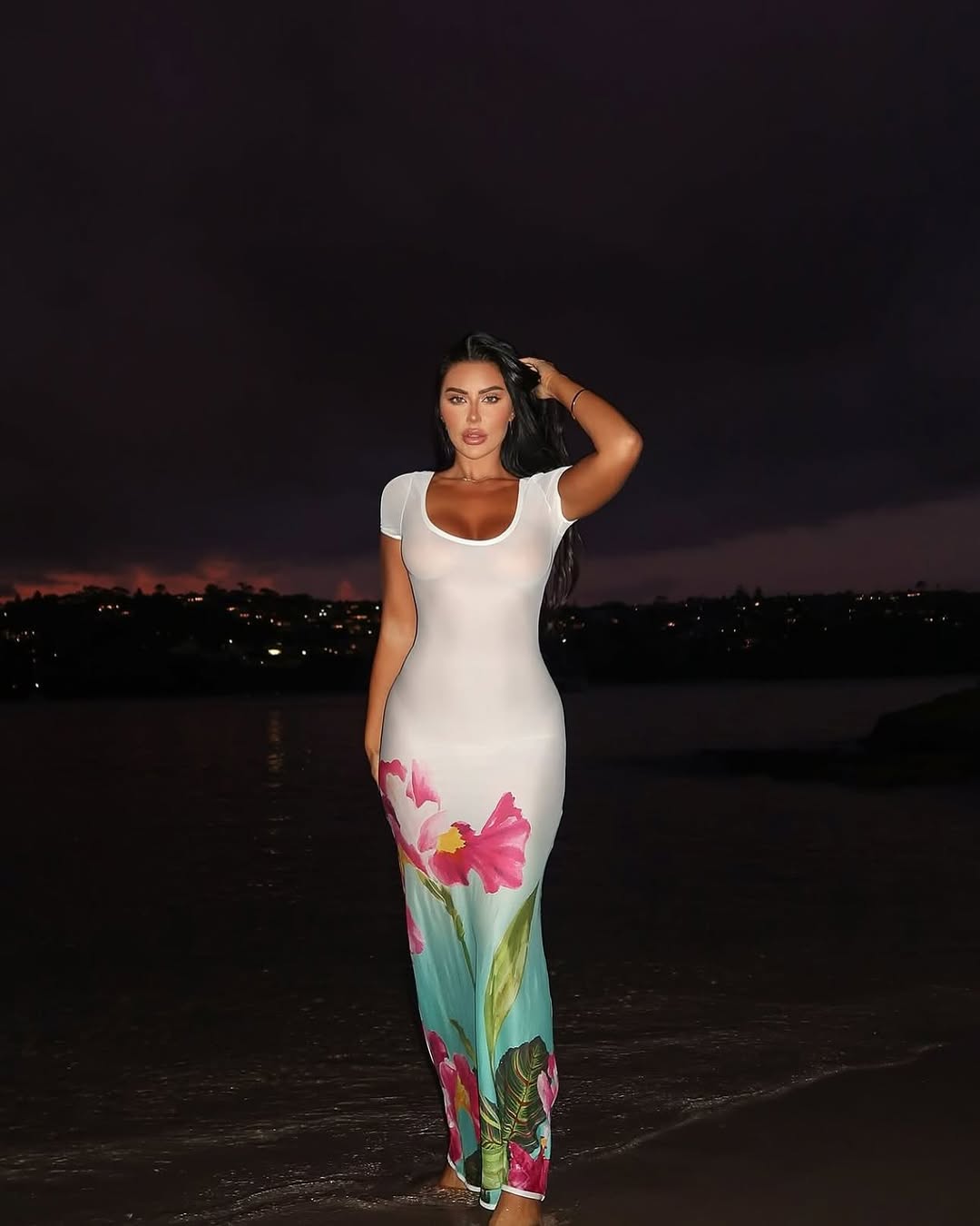 Taking you from beach to bar, our Laylah Midi Dress can be worn as a beach cover up or with our Laylah Bodysuit, crafted from luxe mesh with a fresh floral statement print.