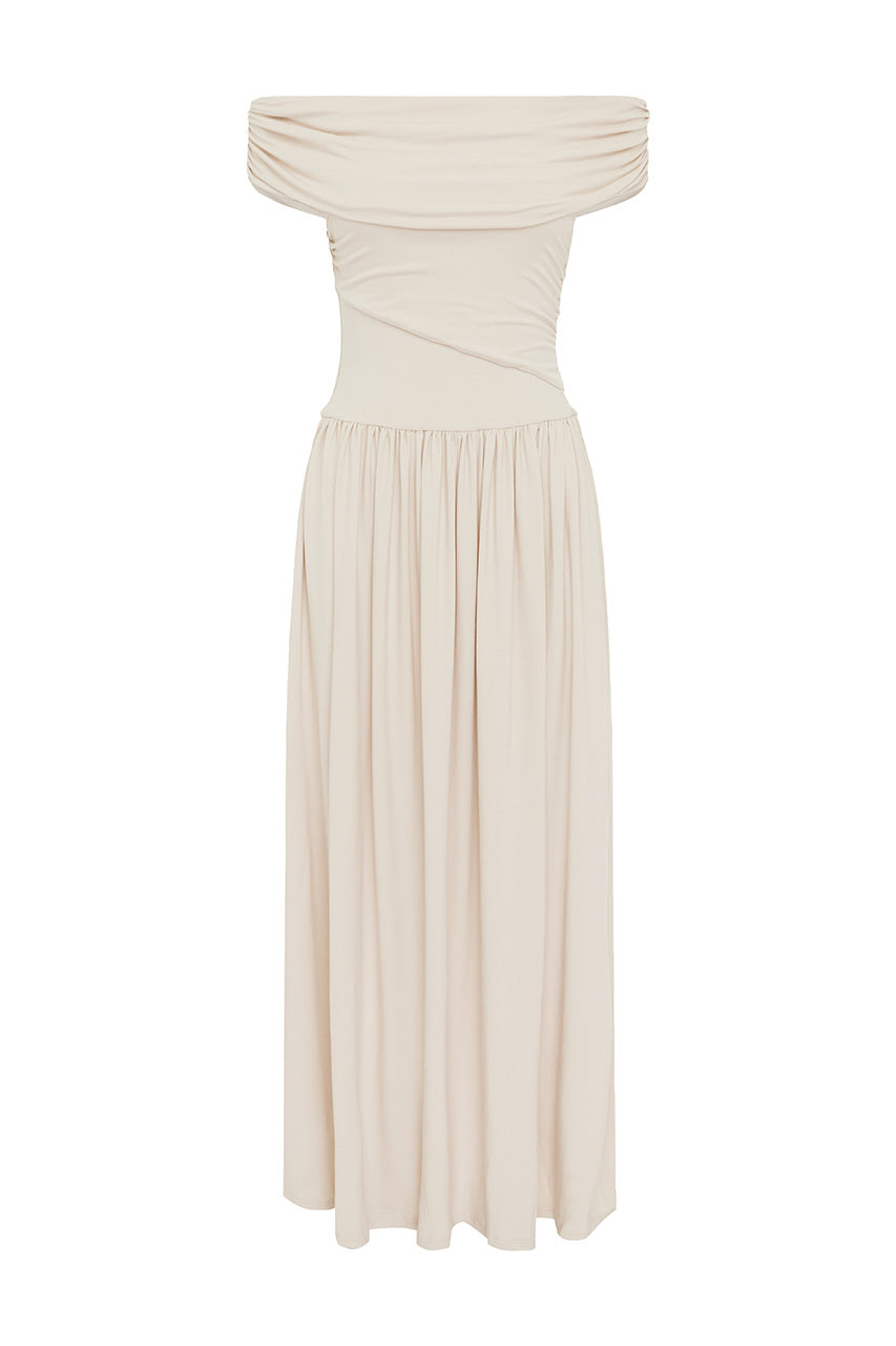 The perfect day event outfit, our Manalla Maxi Dress features an off the shoulder neckline with ruching for a feminine feel.
