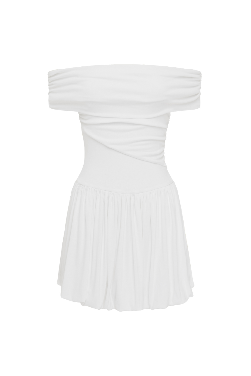 The perfect brunch outfit, our Manalla Mini Dress features an off the shoulder neckline and mini length with ruching for a feminine feel.