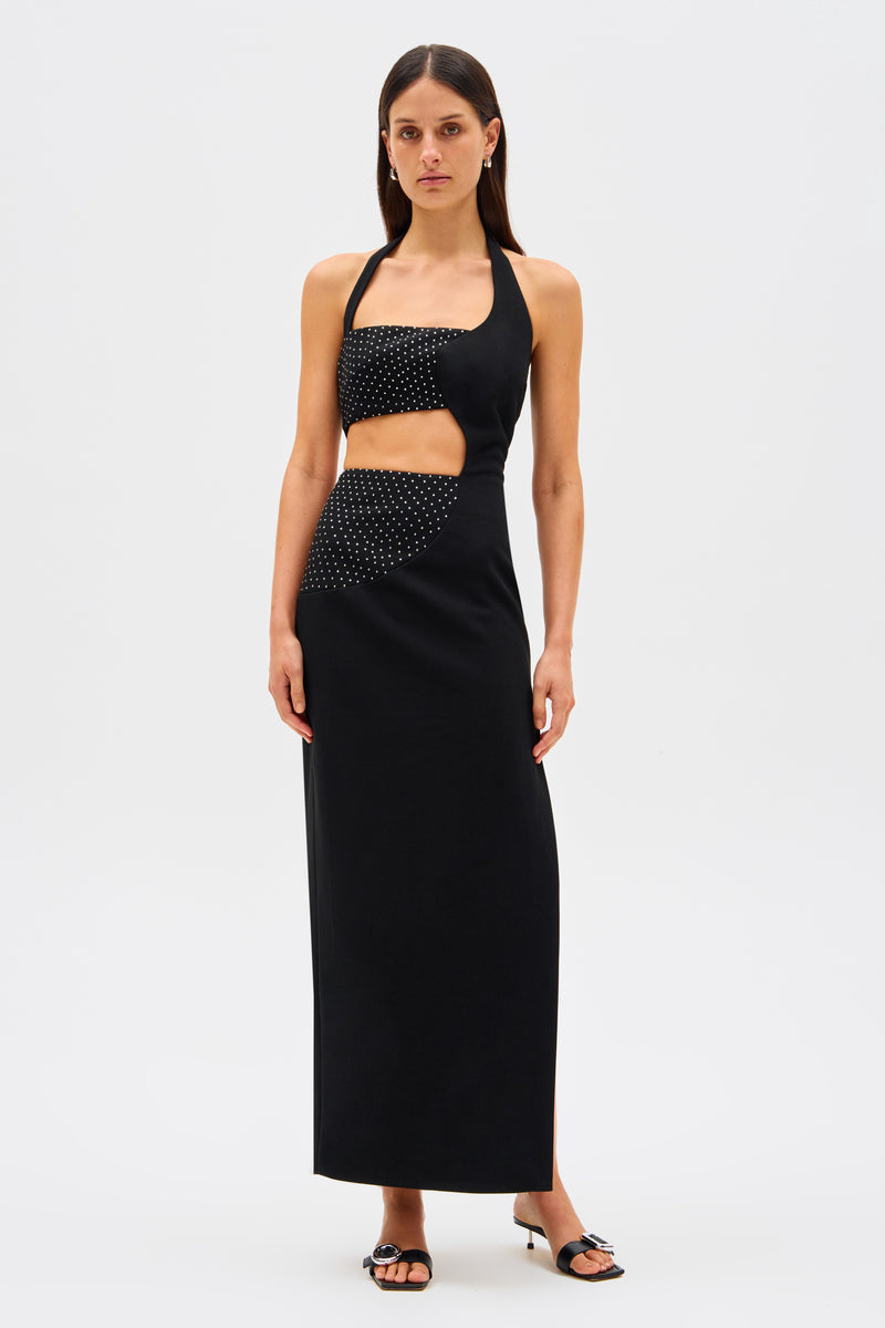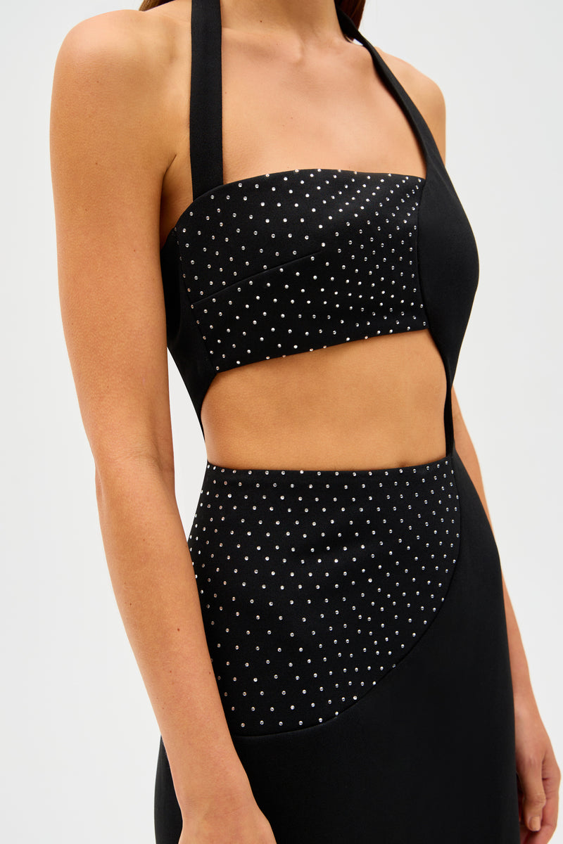 Misha Polina Crepe Diamanté Maxi Dress - Black