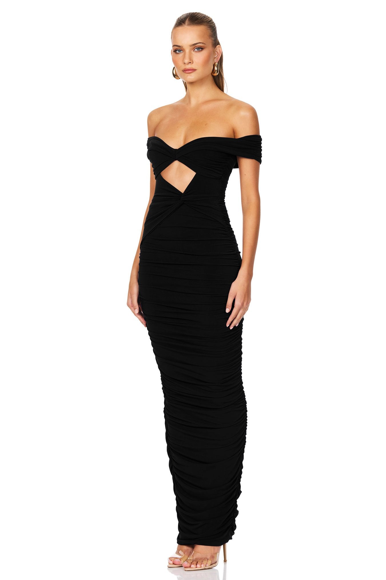 The Nookie Dakota Maxi is a gorgeous off shoulder maxi dress with gathered bra, twist at side waist, gather down the sides and split at centre back hem. Featuring cut out detail at front midriff, invisible zip closure at back and crafted in our signature super soft jersey.