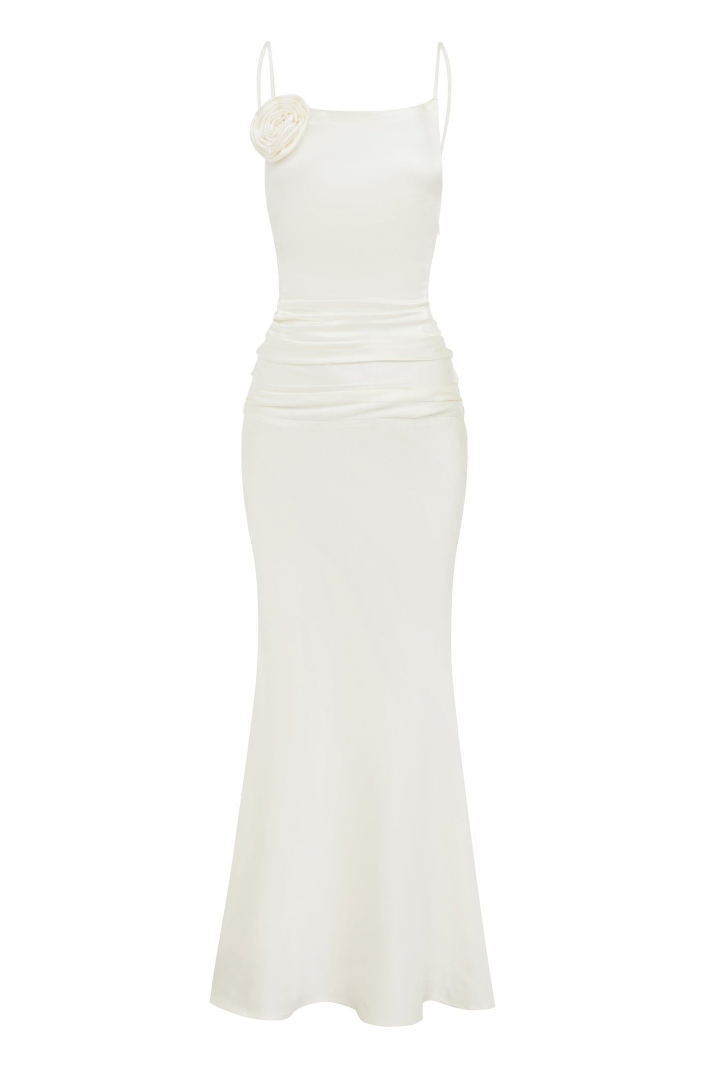 With a tie up back and high neck with rosette appliqué, our Piani Maxi Dress is the perfect balance of sweet and sultry.