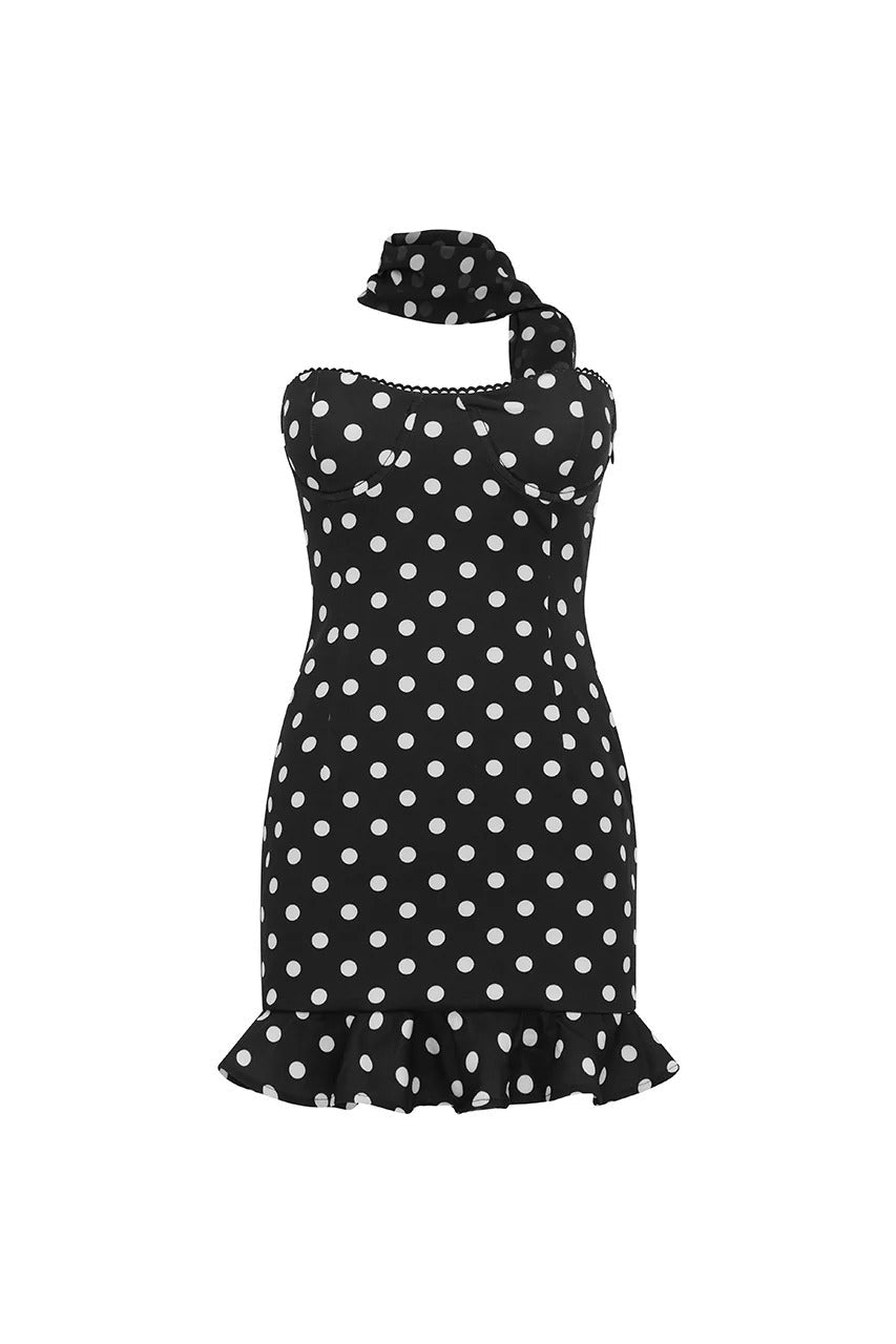 Blaine Mini Dress - Black Polka