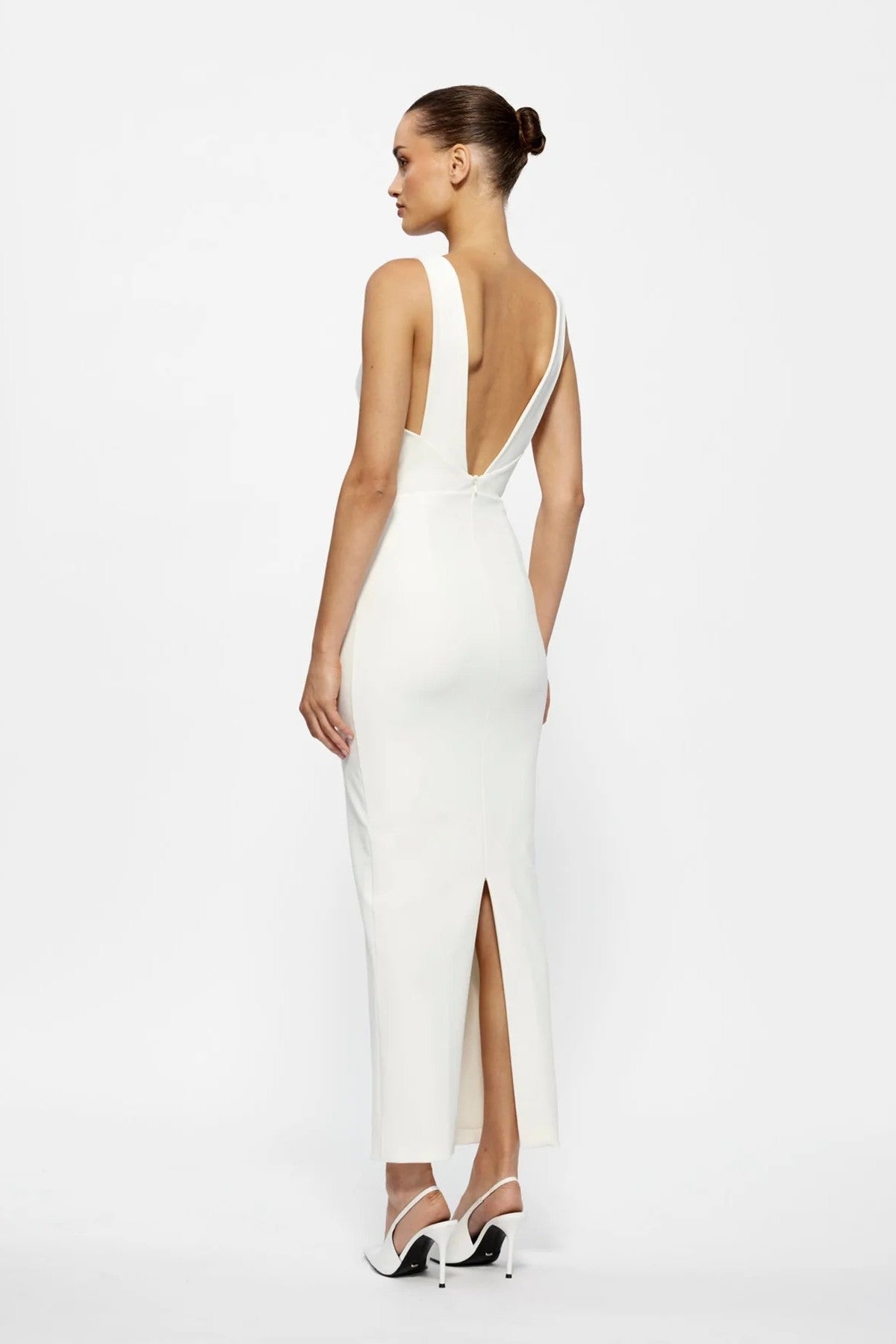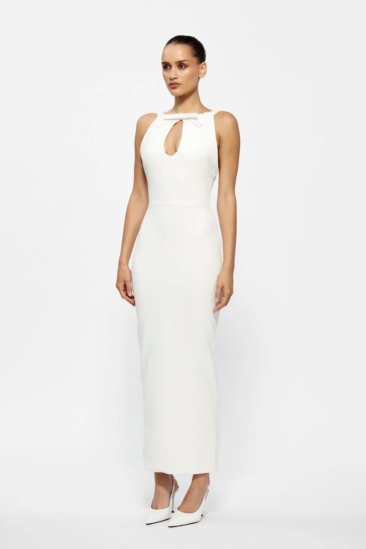 Welcoming the Carter Dress, an effortlessly elegant maxi dress designed for all occasions. Featuring a straight neckline with a detailed bow, the Carter falls on the body beautifully whilst cinching in at the waist. Featuring a V-shape open back and a slight cutout at the bodice to accentuate the female form. Crafted from our signature crepe fabrication. The Carter is a timeless classic that takes you through all seasons and occasions.