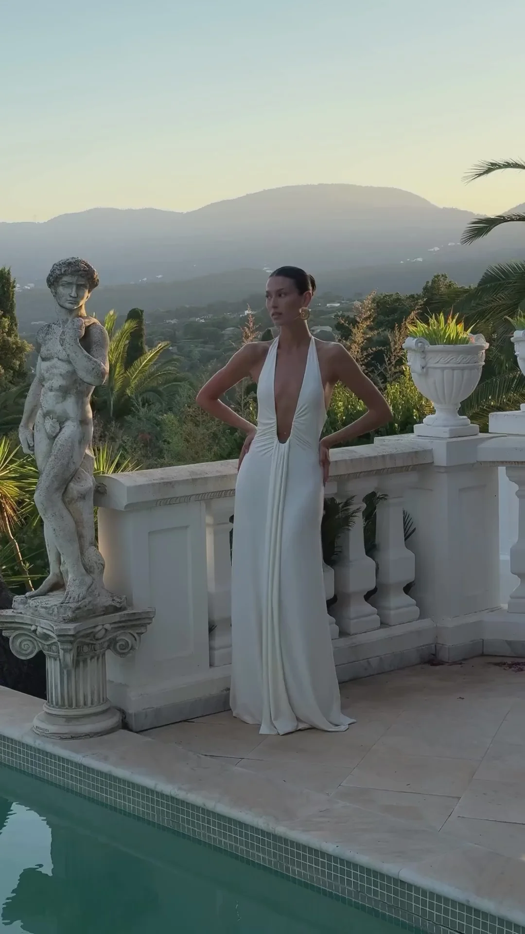 The Misha 'Jennifer' Cupro Maxi Dress in White, a captivating and sexy silhouette that is a true reflection of MISHA's brand DNA. The plunging halter neckline that is finished with an adjustable wire and waterfall sash detailing. Jennifer pushes the boundaries with her long clean lines that expose the wearers cleavage ever so subtly.