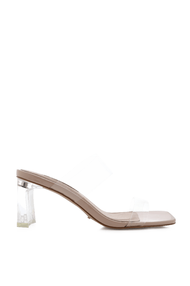 Turn up the glam in this ultra-chic heel, featuring soft clear vinyl straps finished with a clear perspex heel.
